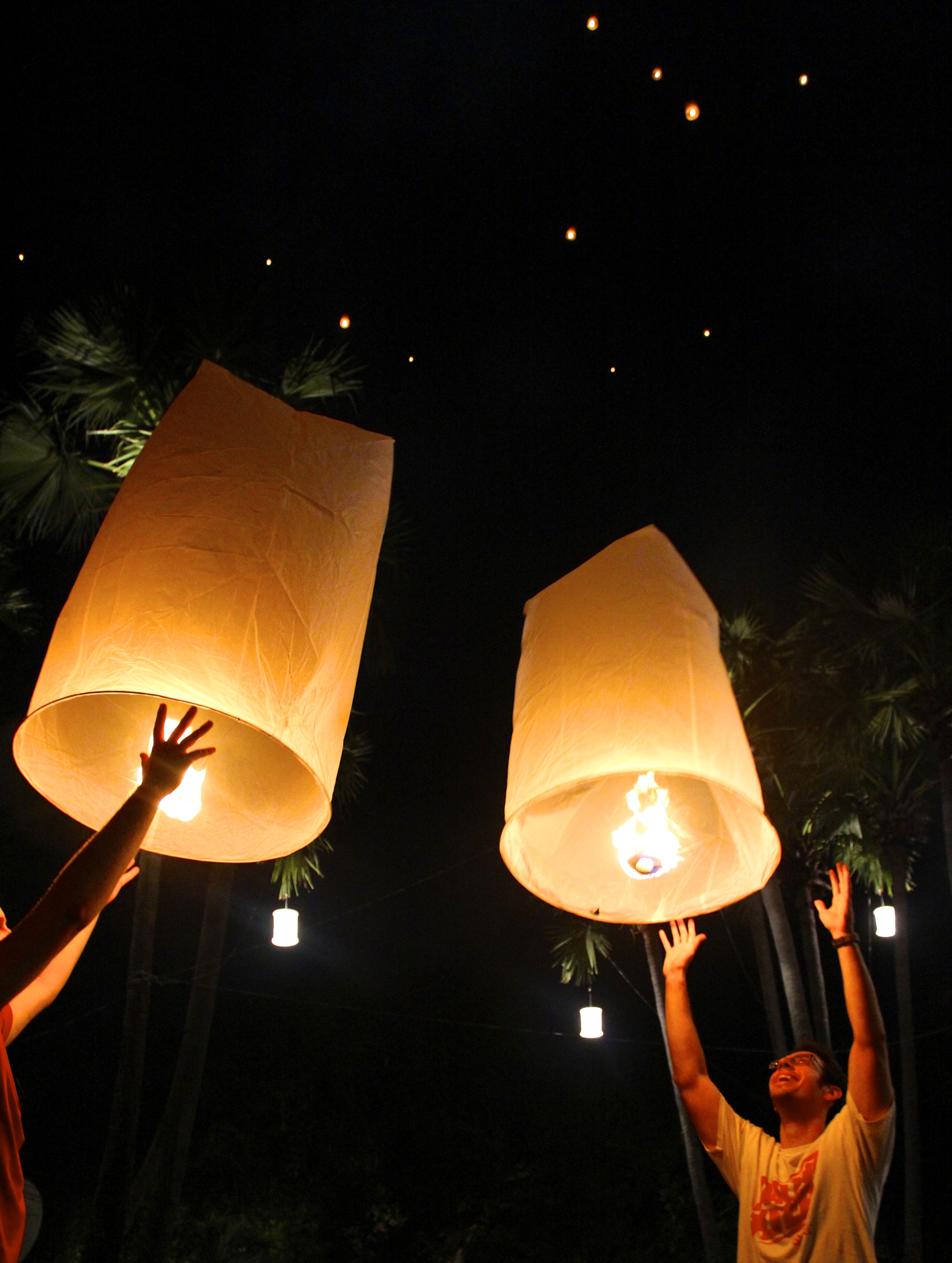I love lights! Sparkling, glittery, warm glowing, lights! The lights on the Eiffel Tower, the lights on the Bay Bridge, the lights on a Christmas tree, and now the lights of a November Thai sky – comloi’s.