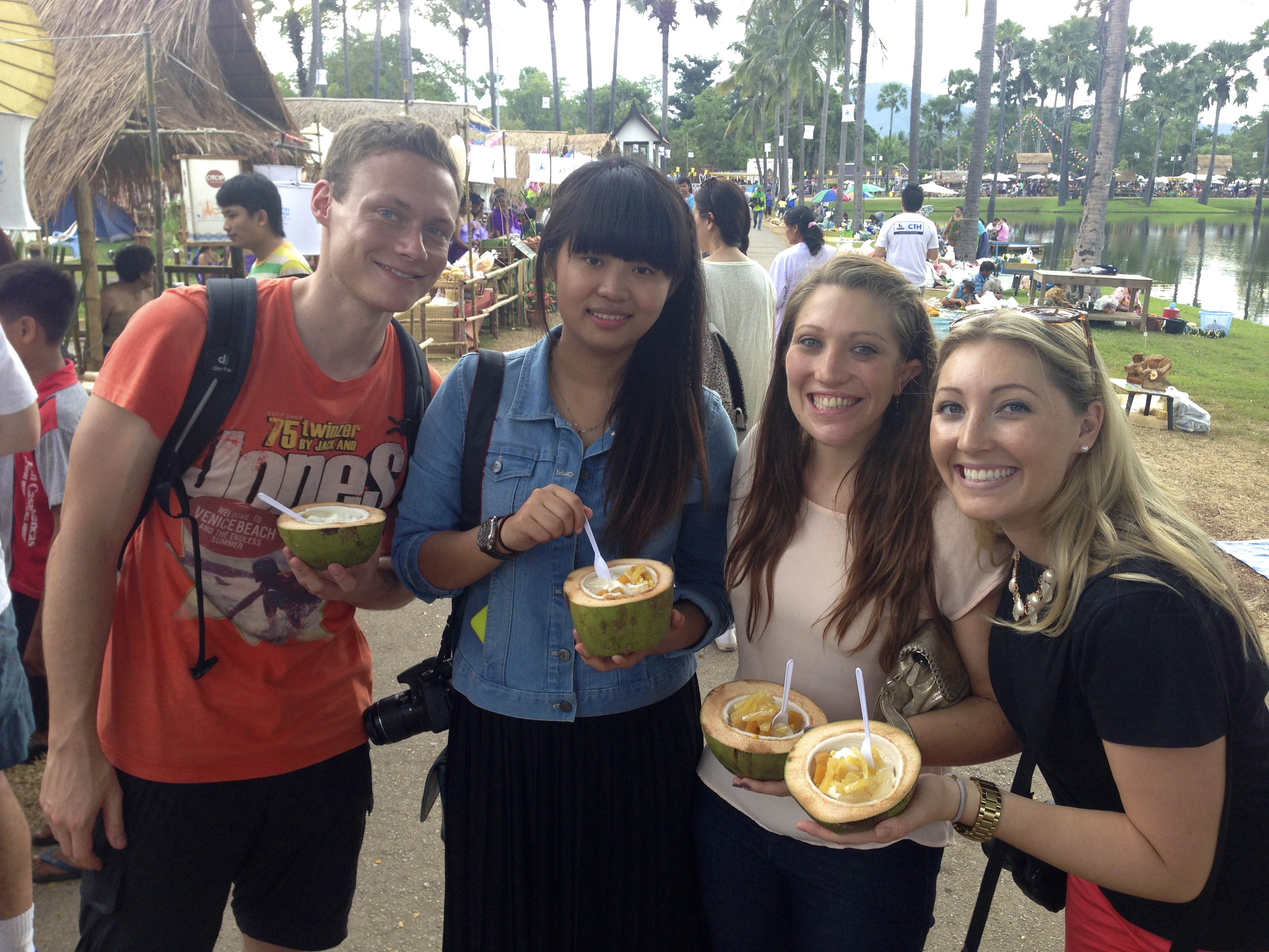 We had planned to make our way back to Chiang Mai for Loi Krathong when our school coordinator informed us of Sukhothai. He said “You must go to Sukhothai, much better for Loi Krathong!” Well, ok. It ended up being a very easy decision for us to make as Sukhothai is much closer to us, requiring a bus ride of only 3 hours as opposed to the 6 to Chiang Mai. We know we will be visiting Chiang Mai again before departing Thailand so it wasn’t to much to sacrifice. We quickly searched for a place to stay and informed some of our nearby fellow CIEE/OEG teacher friends of our plans. A few of them decided to join us!