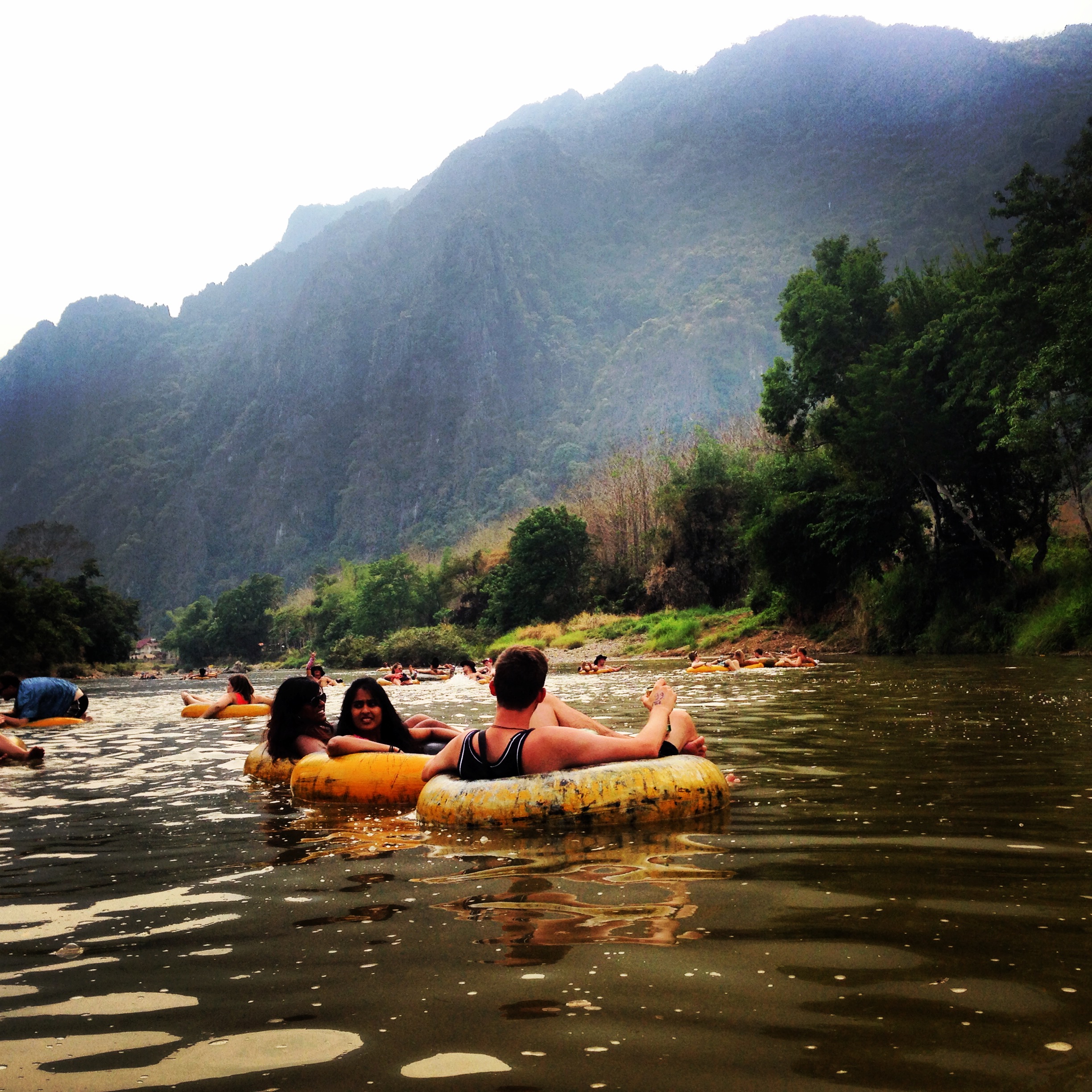 The overall feel of Laos may not have been perky enthusiasm on caffeine, but Luang Prabang and Vientiane offered as nice buffers. We enjoyed some great eats at restaurants Bamboo, Pilgrim’s Cafe, and La Banneton, thanks to the suggestion of fellow traveler’s from San Francisco! We also made our way out to the Bowling Alley – the only ‘bar’ option after 11pm, and spent two consecutive evenings enjoying the atmosphere at Utopia. Luang Prabang was a charming and relaxed city, and a great stop on the journey through Laos. After Luang Prabang most depart south towards Vang Vieng, which happened to be stop number three on the traveler check-list and tubing central.