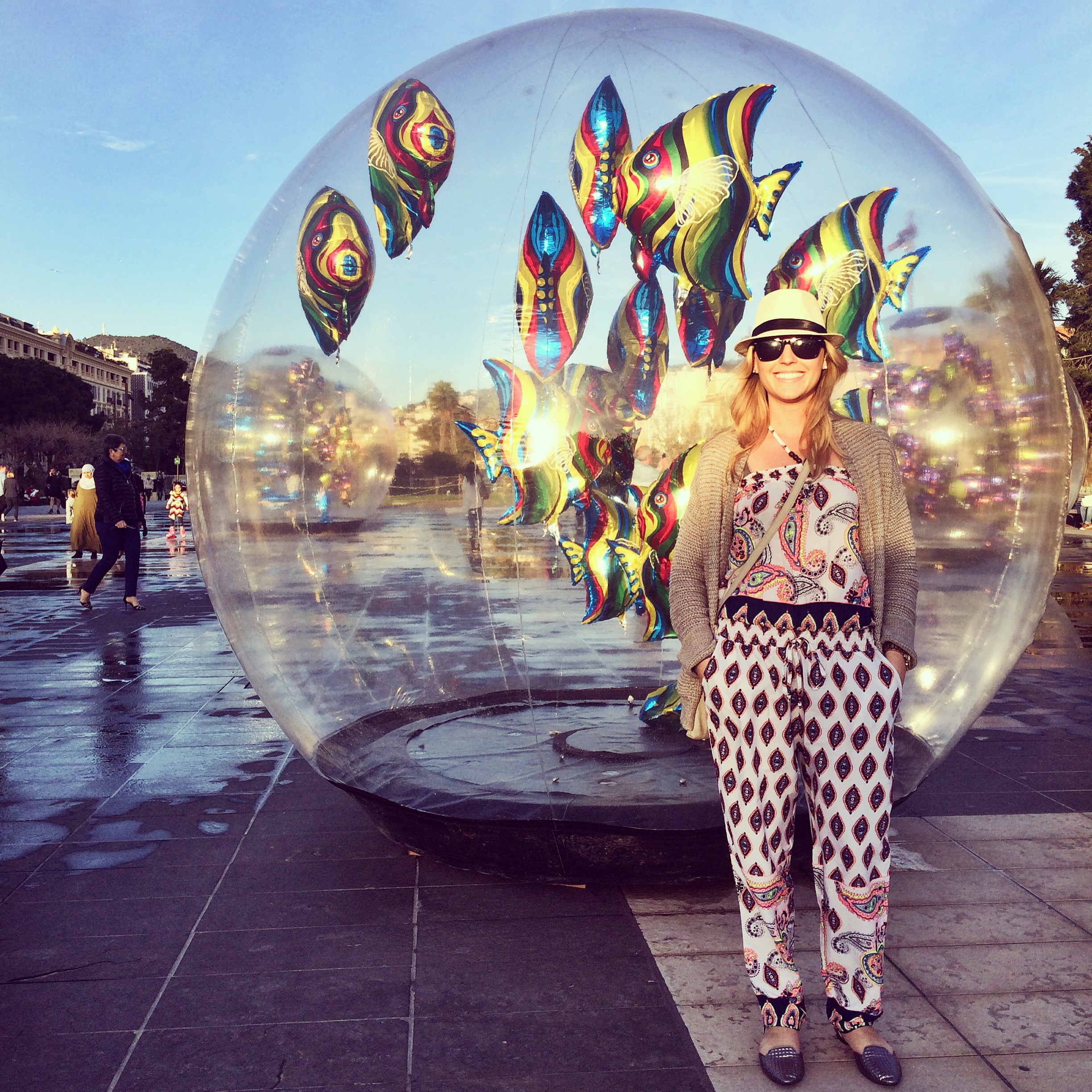 My first evening there I was lucky enough to stumble upon a unique art exhibit being displayed! I somehow seemed appropriately dressed for said exhibit and almost blended right in with the bubbles filled with colorful fish.