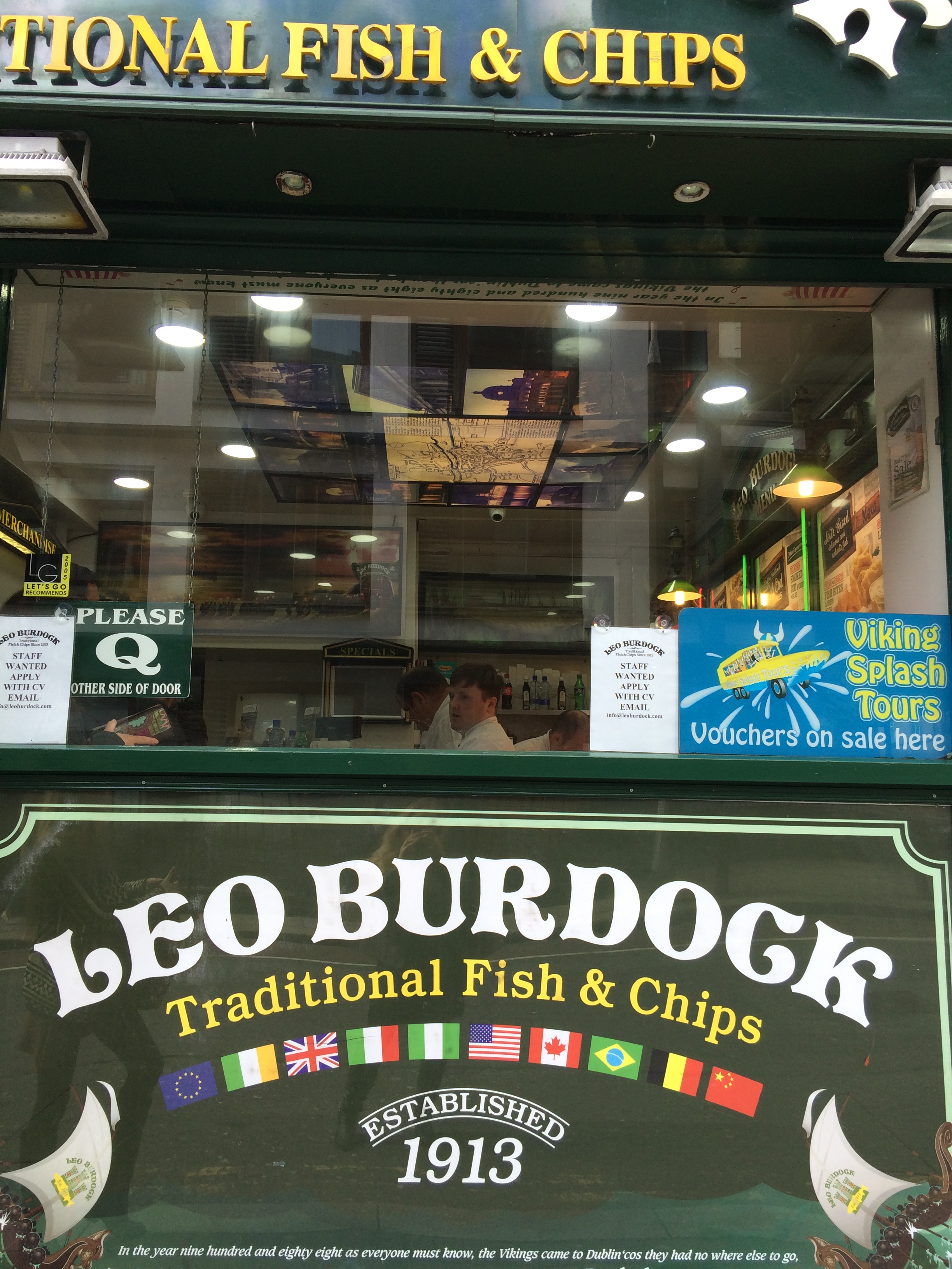 After a morning of gawking at beautiful building we were off to find some lunch before taking on the infamous Guinness Brewery. We opted for a famous fish-n-chips place I had heard about and was also later recommended to us by some locals. Fish-n-chips had been on my mind for a month or so for some reason so by this point I was eager to arrive at Leo Burdock’s and get the take out in my belly.