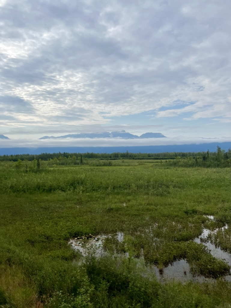 Though it was still light out, it was finally time for indoor lights out, that is, the room darkening shades, around 1 am. Tuesday morning rolled around, and we were up early to check out and board the shuttle to the Denali National Park entrance; we had several hours before the Denali StarTrain would arrive again at 4 pm and bring us to our final destination, Fairbanks.