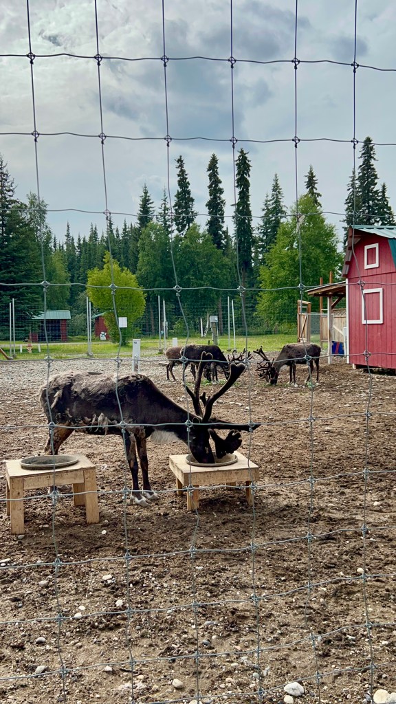 In the afternoon, we took a short drive to the town of North Pole. Yes, it’s a real place, and yes, it’s as charming as you’d imagine. Here every light pole and sign sits atop candy cane-wrapped poles. We visited the Santa Claus House, a Christmas-themed store that operates year-round, a place I had last visited with my grandparents when I was seven years old. It was a whimsical experience, complete with reindeer, meeting Santa and Mrs. Claus, and a letter-posting service to Santa. We drove by, capturing glimpses of the home my dad grew up in and past North Pole Elementary where he attended school as a young boy.