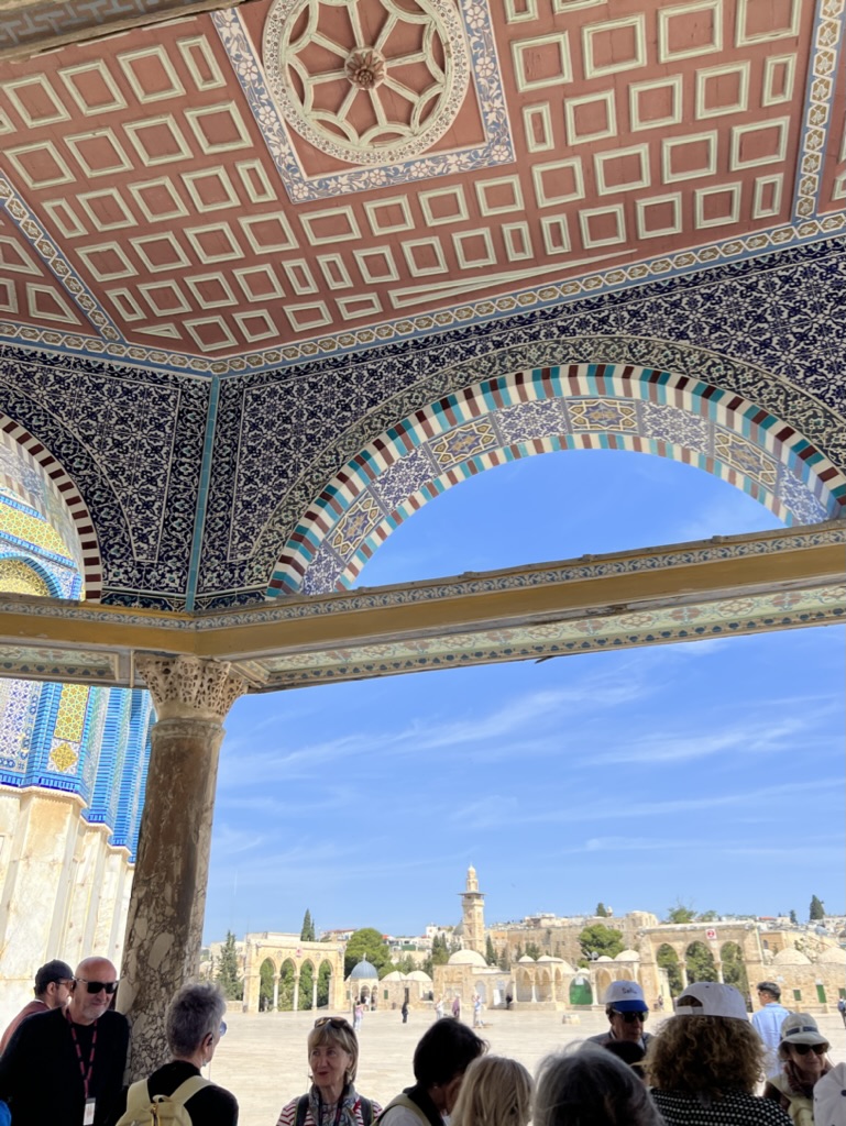 On our first evening, we had a welcome conversation with Min Eisin that framed our upcoming week. Early the next morning, we had breakfast in the hotel, which had a stunning array of delicious options to choose from. We soon found ourselves weaving through the intricate alleys of the Old City, transitioning from them to its modern highways. Our destination: the magnificent Temple Mount and Al Aqsa.