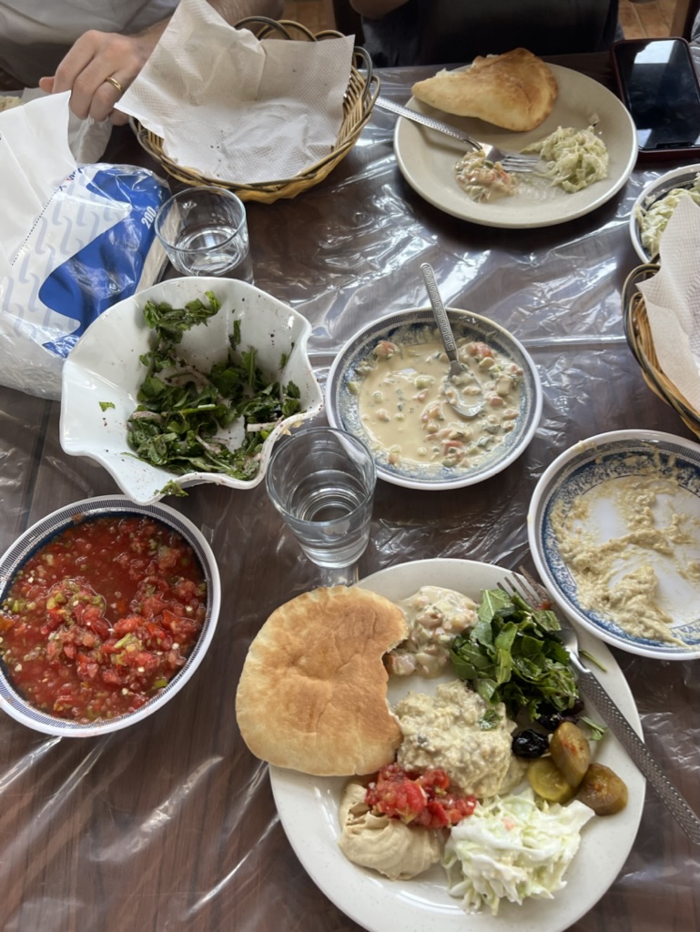 We had lunch in Ramallah with Palestinian and university professor Khalil Shikaka. His work revolves around the peace process, Palestinian state-building, public opinion, the transition to democracy, and the influence of domestic Palestinian politics on the peace process. He talked about the data he and his Israeli university counterpart had been gathering on youth political views, explaining the Palestinian Authority’s intent to retain their current 87-year-old leader due to fears of a Hamas takeover. The conversation was captivating and, at times, unsettling, echoing some of America’s own political issues. The food was delightful.