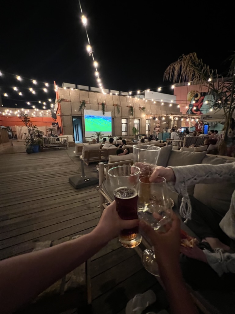 Soon after arriving in Tel Aviv, we checked into the Selina Beach Hotel. That evening, many of us gathered at the hotel’s rooftop bar, claiming our complimentary welcome drink, ordering bar food and additional beverages, and settling in to watch the evening’s football (soccer) match. It was a relaxed introduction to the city, perfect as we faced another early start the next day.