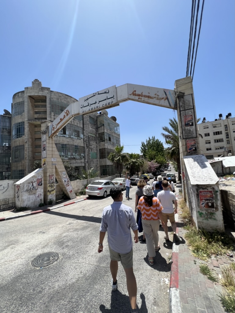We spent 45 minutes walking through Al-Amari, staying close and largely silent. While there, we had instant coffee in a resident’s open ground-floor living area, and some young boys approached us with smiles. We moved swiftly, mostly keeping to ourselves. Our guide consistently informed residents in Arabic that we were American university students on a political tour and not Israelis—a critical distinction for safety reasons.