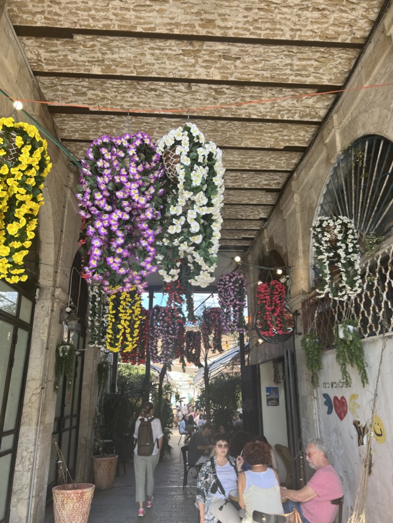 I spent the early afternoon resting, cleaning, and packing. The next day, Saturday, was already time to depart. But first, our group would share in an intimate and stunning Friday night Shabbat dinner (my first!) hosted by a wonderful couple at their home in the Shapira neighborhood. Although their names escape me, this husband-wife duo warmly welcomed us into their beautiful home and garden, presenting each dish with meticulous care and a harmonious blend of flavors. Every course was irresistibly delicious and we all savored each and every bite.