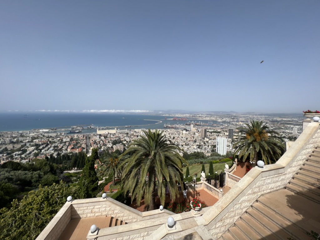 Abigail informed us of a spontaneous detour to the Bahá’í Gardens in Haifa. Cascading down Mount Carmel’s northern slope, these terraced gardens are not only a pilgrimage site for Bahá’í adherents but also an epitome of garden design. Also referred to as the Hanging Gardens of Haifa, they were established in honor of the Báb, the precursor to Bahá’u’lláh, the Bahá’í Faith’s founder. Under the Bahá’í leadership’s guidance, these gardens were designed and erected to complement the Shrine of the Báb and to offer a space of reflection and meditation for both Bahá’ís and other visitors.